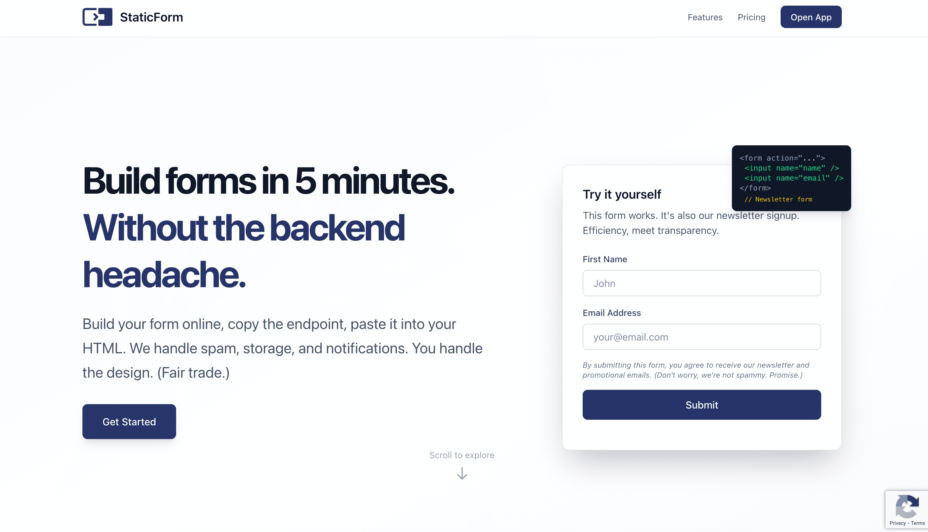 Betrouwbare formulierverwerking met spam-detectie en automatische back-ups voor elke website.